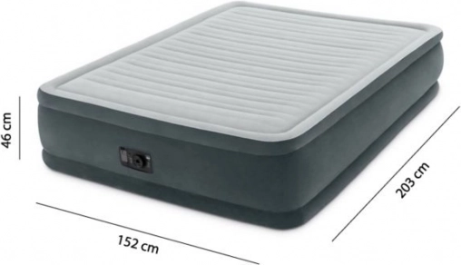 Salteaua gonflabilă Intex (203x152x46 cm) este soluția ideală pentru un somn confortabil pentru două persoane, acasă sau în călătorii. Datorită pompei electrice încorporate, salteaua oferă avantajul unei umflări rapide în doar 3 minute și a unei dezumflări ușoare în 1 minut.