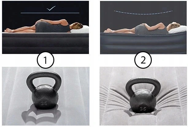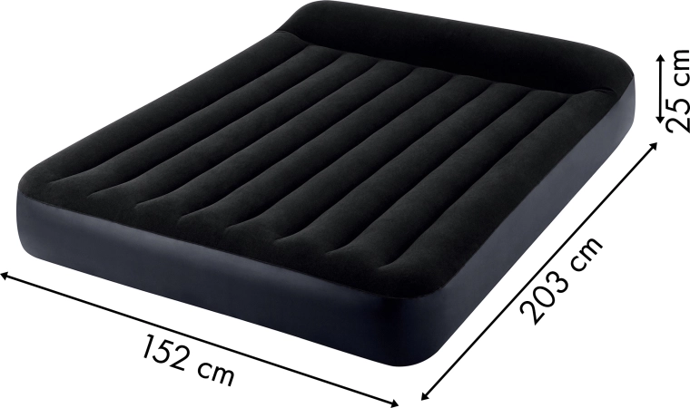 Salteaua din velur INTEX cu dimensiunile 203 x 152 x 25 cm este ideală pentru odihna a 2 persoane. Este fabricată din material PVC rezistent și are partea superioară acoperită cu țesătură de velur impermeabilă. Întregul, într-o culoare plăcută albastru închis, se potrivește oricărui interior. Datorită pompei electrice integrate (alimentare 220 - 240 V). Timpul necesar pentru a pregăti patul gonflabil pentru utilizare este de 250 de secunde. Valva Boston permite evacuarea aerului în decurs de un minut, apoi îl puteți plia și depozita în dulap.