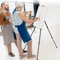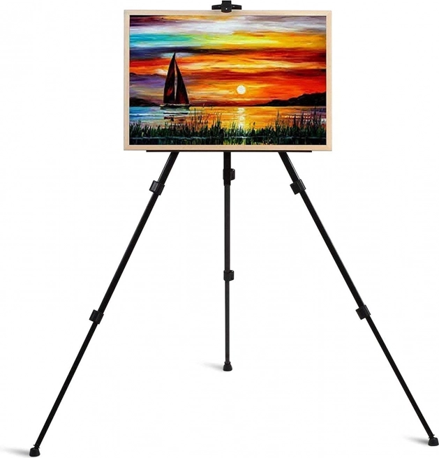 Cu șevaletul de pictură, vei putea lucra la abilitățile tale de pictură atât din confortul casei, cât și în mijlocul naturii. Datorită structurii din aluminiu, este extraordinar de ușor și ușor de transportat. Construcția rezistă la coroziune și la alți factori externi care pot avea un impact asupra lui atunci când pictezi în aer liber. Îți poți ajusta înălțimea cadrului conform propriei nevoi. Un etui practic cu mâner servește pentru depozitarea ușoară a șevaletului sau transportul acestuia între ateliere.