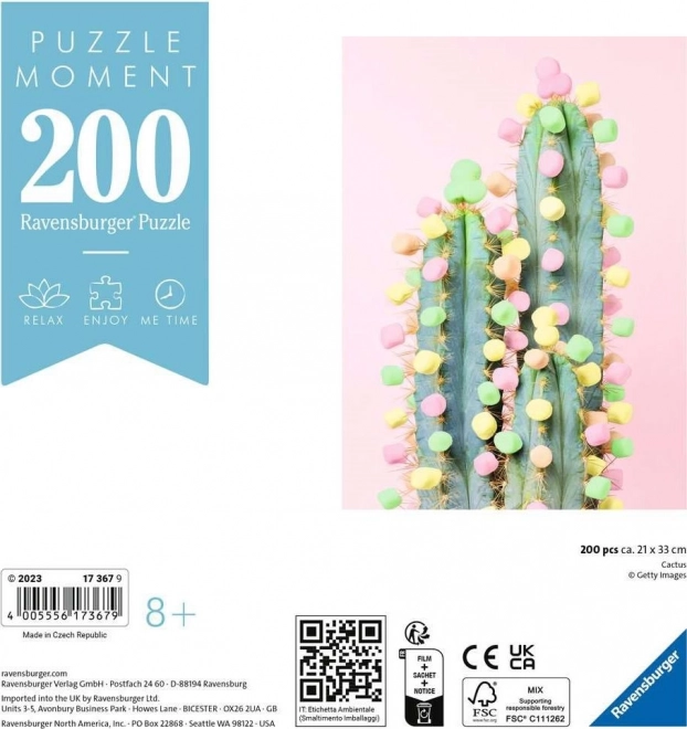 Oferă-ți un moment de liniște cu puzzle-ul RAVENSBURGER din colecția Puzzle Moment. Motivul cu cactus și 200 de piese oferă asamblare rapidă și relaxantă chiar și după o zi solicitantă. Calitate superioară și piese precise pentru o experiență plăcută atât pentru începători, cât și pentru avansați.