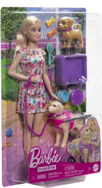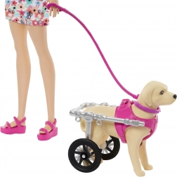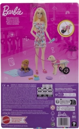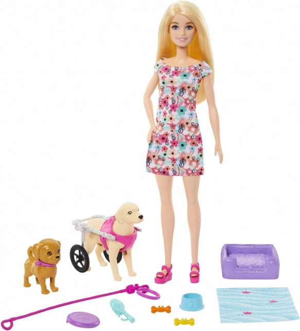 Bucurați-vă de distracție cu Barbie și prietenii ei animali! Această păpușă cu cățelușul și câinele pe cărucior inspiră la joacă creativă și grijă față de toate creaturile. Căruciorul poate fi ușor îndepărtat și atașat din nou pentru a ajuta câinele să ajungă acolo unde are nevoie. Acest set include o mulțime de accesorii, inclusiv un bol pentru mâncare, zgardă, cușetă și lesă, care se potrivesc perfect în mâna Barbie. Culorile și decorațiunile pot varia.