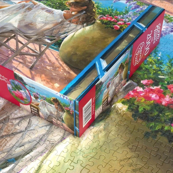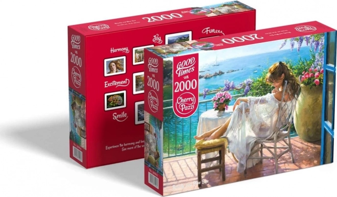 Descoperiți farmecul unei clipe liniștite la mare. Puzzle-ul CHERRY PAZZI aduce o scenă artistică delicată a unei femei care se relaxează pe terasă, cu vedere la ocean. Cu 2000 de piese tăiate cu grijă, este ideal pentru iubitorii de provocări mai dificile și de motive frumoase pentru interior.