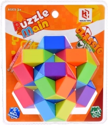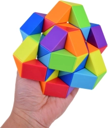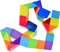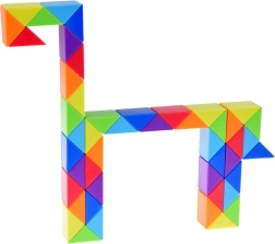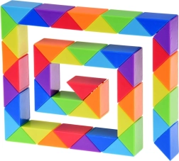 Această jucărie colorată de tip Magic Snake este alcătuită din segmente triunghiulare ce pot fi rotite liber, permițând crearea unei multitudini de forme. Începe cu obiecte simple și treptat abordează creații mai complexe – imaginația nu are limite.
