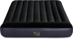 Salteaua catifelată INTEX, cu dimensiunile 203 x 152 x 25 cm, este ideală pentru 2 persoane. Fabricată din material PVC rezistent, partea superioară este acoperită cu un material catifelat impermeabil, plăcut la atingere. Întregul, în culoare bleu-marin plăcută, se potrivește în orice interior. Datorită pompei electrice încorporate (alimentare 220 - 240 V), timpul necesar pentru a pregăti patul gonflabil pentru utilizare este de 250 de secunde. Datorită valvei Boston, îl dezumfli în circa un minut, îl pliezi și îl depozitezi în dulap.