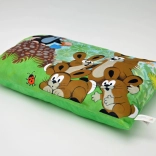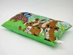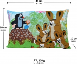 Pernă moale cu motivul îndrăgitului Krtek și al iepurașilor, ideală pentru pătuț, în călătorii sau ca decorațiune încântătoare pentru camera copilului.