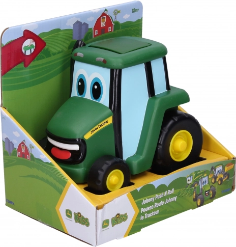 John Deere tractorul Johnny 15 cm: apasă acoperișul și pornește! Fără baterii, operare ușoară și deplasare distractivă înainte. Jucărie ideală pentru micii șoferi.