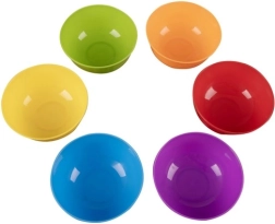 Set educațional distractiv cu figurine de dinozauri și boluri colorate care sprijină învățarea culorilor, număratul și motricitatea fină. Conține 6 boluri, 48 de figurine de dinozauri în culori diferite și 2 pensete pentru exersarea prinderii. Ideal pentru preșcolari și pentru exersarea jucăușă a sortării, concentrării și coordonării ochi–mână.