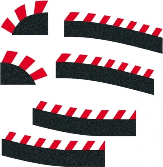 Pachetul include în total 6 bucăți – 4 benzi de margine și 2 capete de închidere – care se atașează ușor la piesele corespunzătoare. Recomandăm combinarea cu segmentele îngustare stânga 30350 și îngustare dreapta 30351 pentru a crea o secțiune îngustată realistă și momente tensionate de depășire.