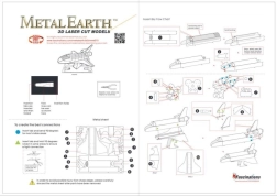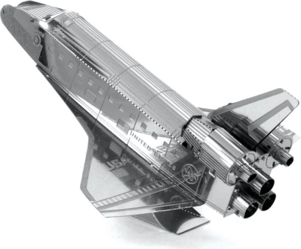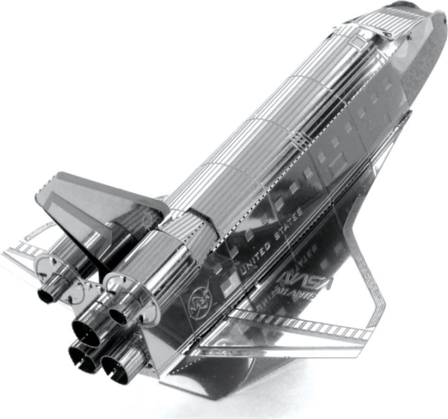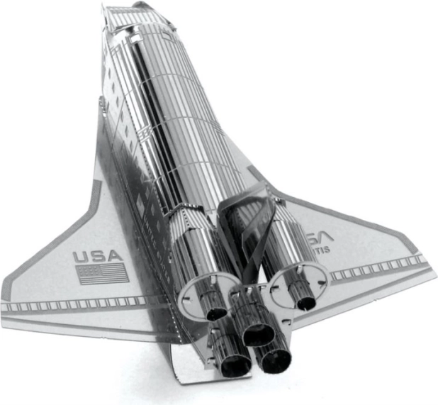 METAL EARTH Naveta Atlantis este un model metalic 3D realizat cu precizie, decupat cu laser. Dintr-o placă pătrată de oțel de 11 × 11 cm asamblați o reproducere fidelă a legendarului orbiter NASA, cu gravură fină, duze și inscripțiile „United States” și „USA”. Modelul asamblat este ideal ca piesă de colecție și ca dar original.