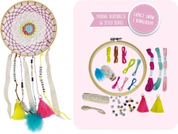 Descoperă bucuria creației cu setul creativ care îți permite să realizezi un dreamcatcher în stil boho unic. Combină mărgele din lemn, pene, panglici și litere și creează o decorațiune exact așa cum îți imaginezi – cu nume, motto sau mesaj.