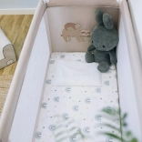 Salteaua moale asigură confortul bebelușului la odihnă, în timp ce lateralele transparente oferă o supraveghere mai bună și o circulație optimă a aerului. Setul include o geantă practică de transport, care protejează pătuțul de impurități și facilitează transportul.