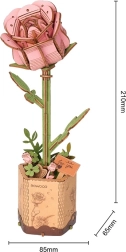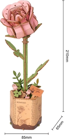 Acest trandafir elegant din lemn este un cadou grozav și un accesoriu stilat pentru interior. Datorită concepției inteligente a pieselor, modelul se asamblează ușor, păstrând un aspect foarte realist. Cu dificultate scăzută și un timp de construcție de aproximativ 30 de minute, proiectul va fi pe placul începătorilor, familiilor și pasionaților creativi.