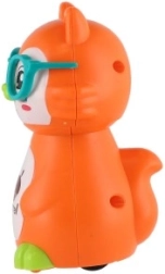 Vesela veveriță din plastic cu mecanism de inerție, care pornește singură după apăsarea capului. Datorită operării ușoare, plasticului rezistent și culorilor vii, este o jucărie ideală pentru copiii de la 3 ani și susține dezvoltarea motricității și a imaginației.