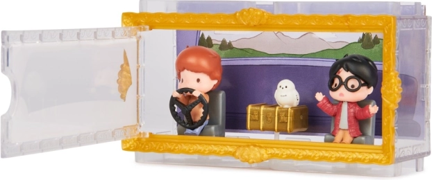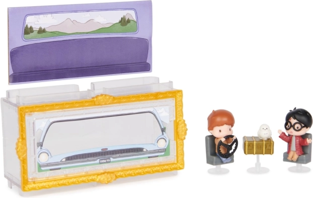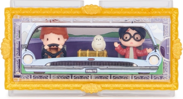 Intrați în lumea Camerei Secrete cu mini figurine detaliate de 3,81 cm. Harry și Ron în iconica mașină zburătoare a familiei Weasley și bufnița Hedwig vor încânta orice fan. Cutia transparentă cu fundal tematic creează efectul că personajele stau chiar în mașină – perfectă pentru o expunere stilată.
