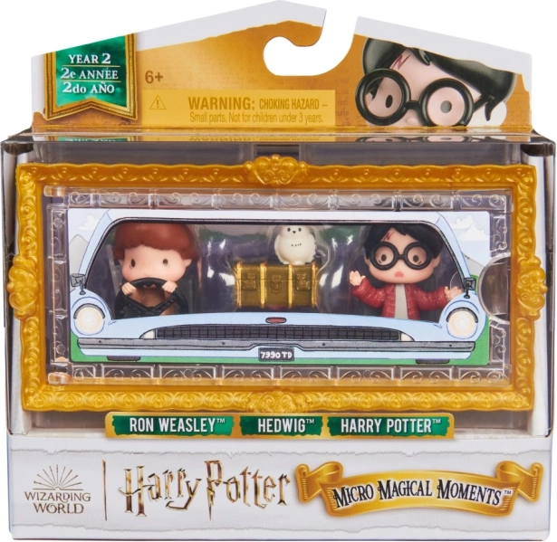 Trăiește scene iconice din lumea vrăjitorilor cu pachetul dublu de mini figurine HARRY POTTER și RON WEASLEY în mașina zburătoare, completat de Hedwig, suporturi și cutie transparentă stivuibilă. Ideal pentru colecționari și copii, perfect pentru expunere și combinare cu alte seturi Micro Magical Moments.