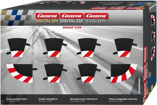 Îmbunătățiți-vă circuitele de curse cu bordurile interioare pentru curba 1/30° (R1), compatibile cu pistele auto CARRERA Evolution, Digital 132 și Digital 124. Pachetul conține 6 bucăți pentru o trecere mai stabilă prin curbe și un aspect mai realist al pistei.