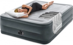 Salteaua gonflabilă înaltă INTEX oferă un somn deplin pentru două persoane, acasă sau în călătorii. Pompa electrică integrată asigură umflare și dezumflare foarte rapidă, în timp ce suprafața flockată (tip catifea) este plăcută la atingere și împiedică alunecarea cearșafului. Construcția robustă și camerele ranforsate garantează stabilitate și suport pentru coloană pe tot parcursul nopții.