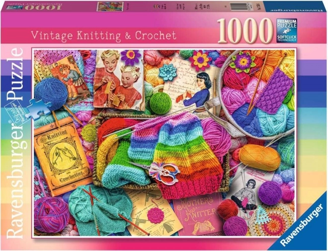 Descoperiți puzzle-ul de calitate cu motiv vintage de tricotat și croșetat de la RAVENSBURGER. Cele o mie de piese oferă piese precise cu îmbinare perfectă, un design retro superb și o imagine finală de aproximativ 70 × 50 cm – ideală pentru relaxare și ca decorațiune după finalizare.