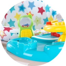 Patru funcții într‑unul singur – premergător, balansoar, săltăreț și centru de joacă – oferă copilului diferite modalități de a se distra și a-și dezvolta abilitățile.
