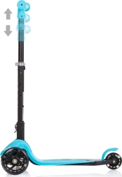 Un alt element atractiv sunt luminițele LED pe roțile din față și din spate, care oferă un aspect strălucitor în timpul cursei. Datorită designului ușor și compact, ghidonul poate fi pliat pentru o depozitare ușoară.