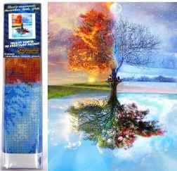 Pictura cu diamante este o modalitate grozavă de a te relaxa și, în același timp, de a crea o mozaică frumoasă din pietricele sclipitoare. Motivul arborelui în cele patru anotimpuri aduce o armonie de culori care va ieși în evidență în orice interior. Găsești tot ce ai nevoie într-o singură cutie – deschizi, începi să lipești și privești cum prinde viață tabloul.