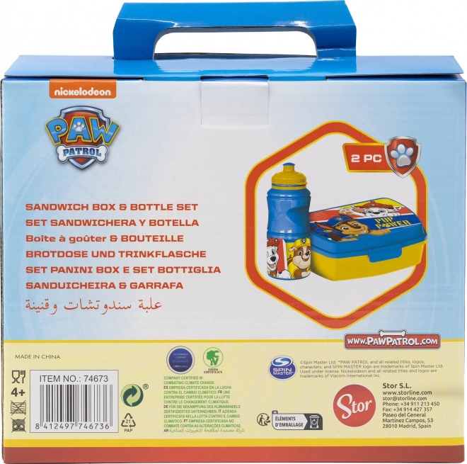 Setul pentru copii, potrivit pentru școală, locul de joacă și excursii, combină o caserolă pentru gustare și o sticlă de 380 ml cu îndrăgitul motiv PAW Patrol. Caserola este realizată din plastic rezistent și este decorată cu un capac atrăgător pe care copiii îl vor îndrăgi. Pe lângă gustări, poate fi folosită și pentru depozitarea jucăriilor mici și a micilor comori.