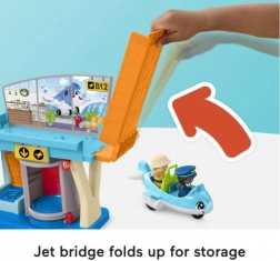 Descoperă Fisher-Price Little People aeroport – un set de joacă distractiv inspirat de un aeroport real, care oferă ore întregi de joacă imaginativă pentru cei mici. Copiii pot roti indicatorul de destinație, mişca banda pentru bagaje, trece valizele prin scannerul cu raze X și îmbarca în avion prin pasarela pliabilă. Ideal pentru dezvoltarea motricității fine, înțelegerii cauză–efect și povestirii pentru copiii de 1–5 ani.