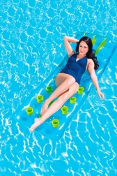 Această saltea gonflabilă ușoară și practică este ideală pentru relaxare la piscină sau la mare. Datorită construcției cu despărțitoare, oferă o poziție stabilă și o distribuire mai bună a greutății până la 90 kg. Se umflă, se dezumflă și se transportă ușor – cântărește doar 1,3 kg.