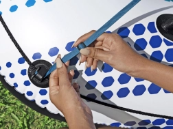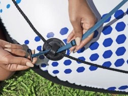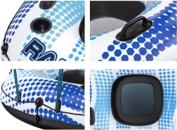 Pentru utilizare sigură și ușoară, colacul este echipat cu valvă de siguranță împotriva pierderii aerului și cu sistemul inteligent CLASP 'N GO pentru conectare cu un alt colac. În pachet găsești și un petic de reparare pentru mici deteriorări neașteptate.