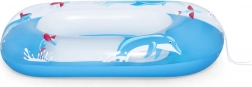 Această barcă gonflabilă cu un motiv vesel de delfin invită la distracție îndelungată în apă. Ideală pentru utilizare la piscină, la mare sau pe lac. Manipularea este ușoară datorită frânghiei frontale, care crește confortul în timpul utilizării.