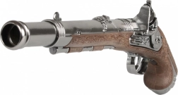 Dați viață aventurilor de pirat cu un pistol realizat autentic din metal și plastic. Gravurile decorative și aspectul de lemn al mânerului amintesc de pistolul cu cremene istoric, care se potrivește de minune cu costumele și sărbătorile tematice.