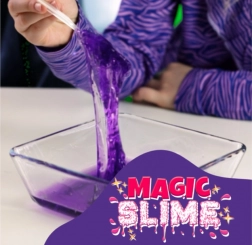 Încercați să creați propriul slime și priviți cum își schimbă culoarea de la verde cosmic la mov prin amestecare. Setul creativ îi încurajează pe copii să descopere și oferă o experiență unică.
