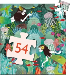 Descoperiți magia lumii subacvatice cu frumosul puzzle DJECO Rai acvatic cu 54 de piese. Puzzle pătrat cu motivul sirenelor încântă copiii și părinții prin ilustrațiile detaliate și calitatea execuției. Ideal pentru dezvoltarea motricității fine, a răbdării și a imaginației vizuale.