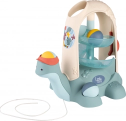 Broasca țestoasă cu bile și tobogan oferă posibilitatea de a fi trasă, sprijinind astfel joaca mobilă și îmbunătățind coordonarea.