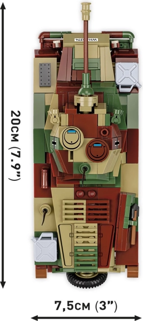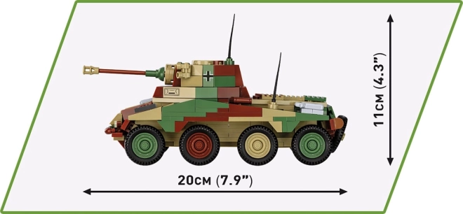Modelul Sd.Kfz. 234/2 PUMA măsoară aprox. 20 × 7,5 cm și se remarcă prin formă autentică, camuflaj și imprimări detaliate care evidențiază fiecare panou și capac.