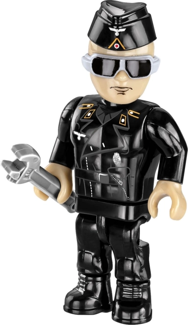 Include o figurină în uniformă neagră și o plăcuță cu denumirea vehiculului – ideal pentru diorame și vitrine.