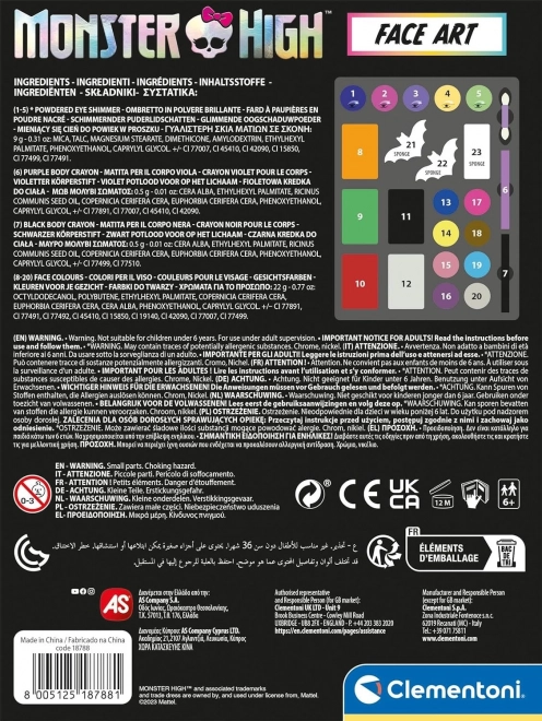 Bucurați-vă de distracția creativă cu setul Face Art Monster High de la Clementoni, care oferă opțiuni colorate și sigure de machiaj inspirate de personajele îndrăgite din seria Monster High.