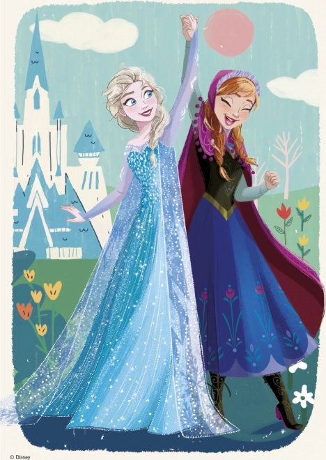 Această set de puzzle-uri Regatul de Gheață cu prințesele Anna și Elsa conține două puzzle-uri de câte 77 piese. Este ideal pentru copii de la 5 ani, deoarece îi ajută să își dezvolte diferite abilități și talente.