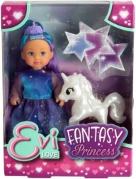 Descoperă lumea magică cu păpușa Evi Love în rolul de prințesă fantezie. Poartă o rochie albastru‑violet superbă, păr colorat asortat, iar în pachet este însoțită de un inorog sidefat adorabil pentru jocuri imaginative nesfârșite.