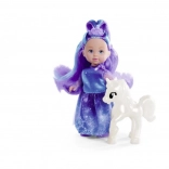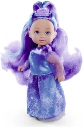 Rochia strălucitoare albastru‑violet și părul colorat asortat transformă păpușa Evi Love într-o adevărată prințesă fantezie.