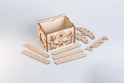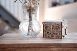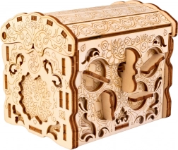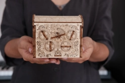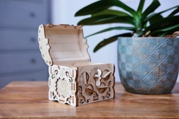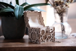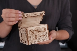 Transformă dăruirea într-o aventură. Cutiuța elegantă din lemn, cu decupaje fine și detalii decorative, funcționează ca un puzzle mecanic – destinatarul trebuie să descopere pașii corecți pentru a ajunge la surpriza ascunsă. Datorită execuției de calitate, cutia este nu doar funcțională, ci și un accesoriu decorativ pentru interior.