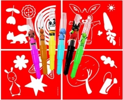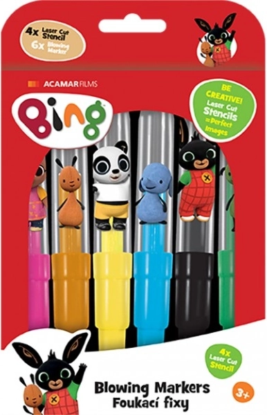 Setul de creioane cu suflat BING îi va încânta pe toți micii artiști. Șase culori variate și șabloanele tematice permit crearea ușoară a desenelor originale cu personajele preferate. Suflarea simplă prin cariocă creează tranziții fine și efecte de spray fără murdărie.