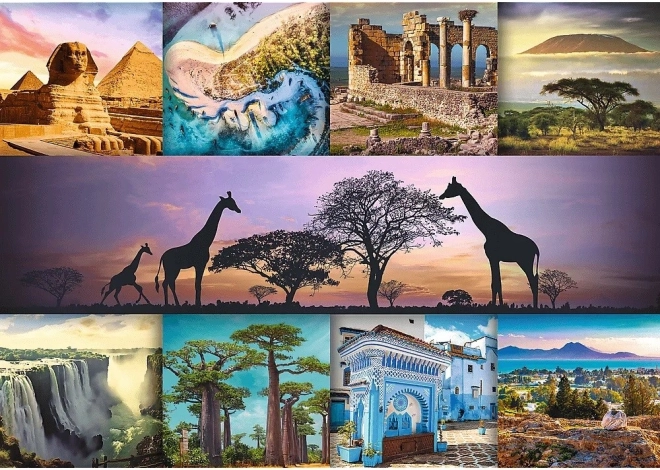 Descoperiți simbolurile iconice africane și frumusețile naturale prin puzzle-urile în formă de colaj.