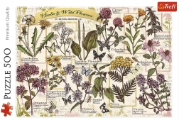Puzzle Cartea plantelor conține 500 piese și oferă o grafică retro minunată cu plante, amintind de un vechi ierbar.