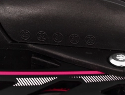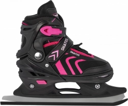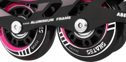 Confortul este asigurat de branțul profilat cu spumă EVA moale, acoperit cu material plăcut Velvet. Sistemul triplu de închidere – șireturi, bandă cu arici și cataramă de siguranță – fixează piciorul ferm și sigur. Partea de șasiu din aluminiu pentru roți, roțile PU 64×24 mm cu duritate 85A și rulmenții ABEC 7 oferă o rulare lină și stabilă. Lamele pentru gheață din oțel inoxidabil sunt ușor de întreținut și asigură o alunecare excelentă.