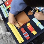 Conține 14 elemente diverse, printre care fermoare, catarame, nasturi și altele, care susțin abilitățile practice și independența.