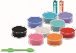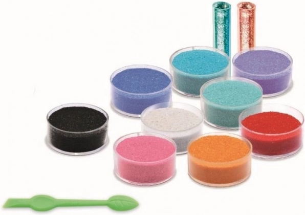 Descoperiți magia creației cu acest set creativ de la DJECO, ce permite copiilor să realizeze imagini colorate și strălucitoare. Cu ajutorul unei spatule speciale, îndepărtează zonele autocolante marcate și le presară cu nisip sau sclipici conform numerelor.