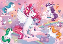 Maxi puzzle cu 24 de piese și tematica unicornilor veseli de la CLEMENTONI îi va încânta atât pe copii, cât și pe adulți. Oferă tipărire de calitate, piese care se îmbină perfect și o cutie robustă. Distracție grozavă care dezvoltă concentrarea și motricitatea fină.