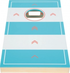 Această placă de joc din lemn, de calitate, reunește două activități îndrăgite într-un format compact. Pe o parte joci cornhole – aruncarea săculeților din material în orificiu, iar pe cealaltă parte hochei de masă – lansarea pucului cu ajutorul unei benzi elastice către ținte. Datorită marcajului punctelor cu săgeți în loc de cifre, pot ține scorul chiar și copiii mai mici.
