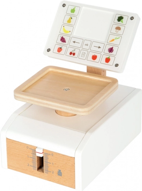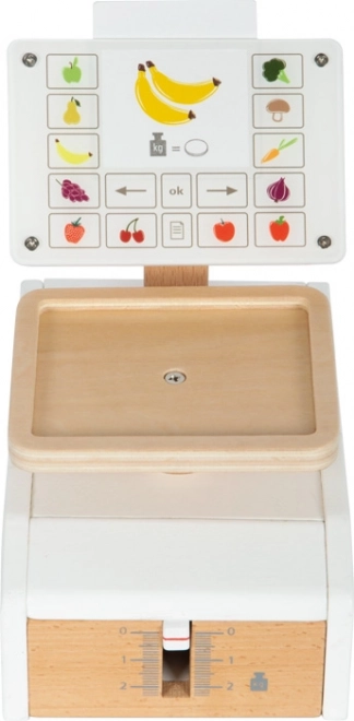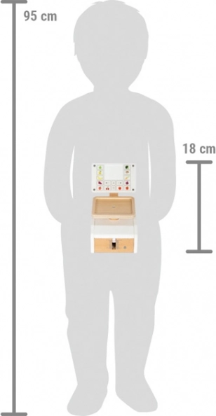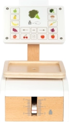 Cântarul pentru copii small foot Fresh este accesoriul ideal pentru orice bucătărioară sau magazin de joacă. Mișcarea reală a indicatorului și a cupei la încărcare sprijină înțelegerea principiului măsurării greutății. „Afișajul” mare din acrilat de calitate este imprimat cu elemente de control și motive de fructe și legume, ceea ce crește claritatea și distracția în timpul jocului.